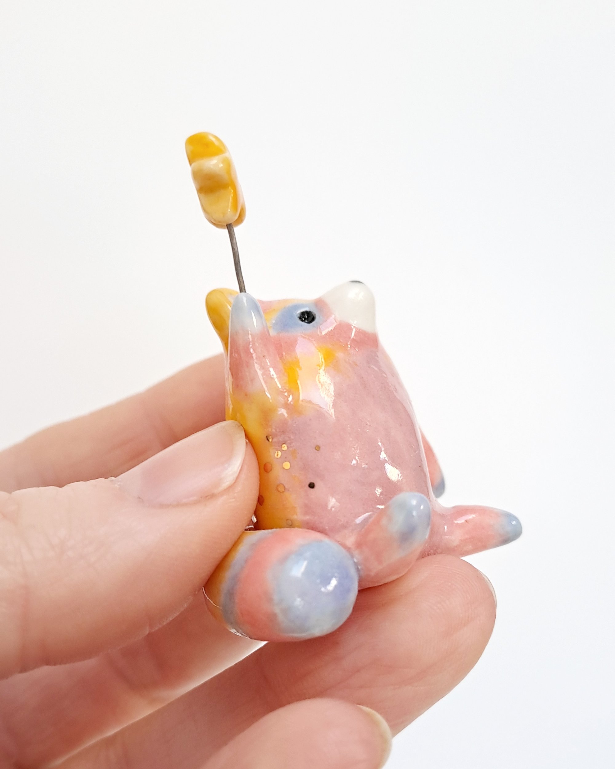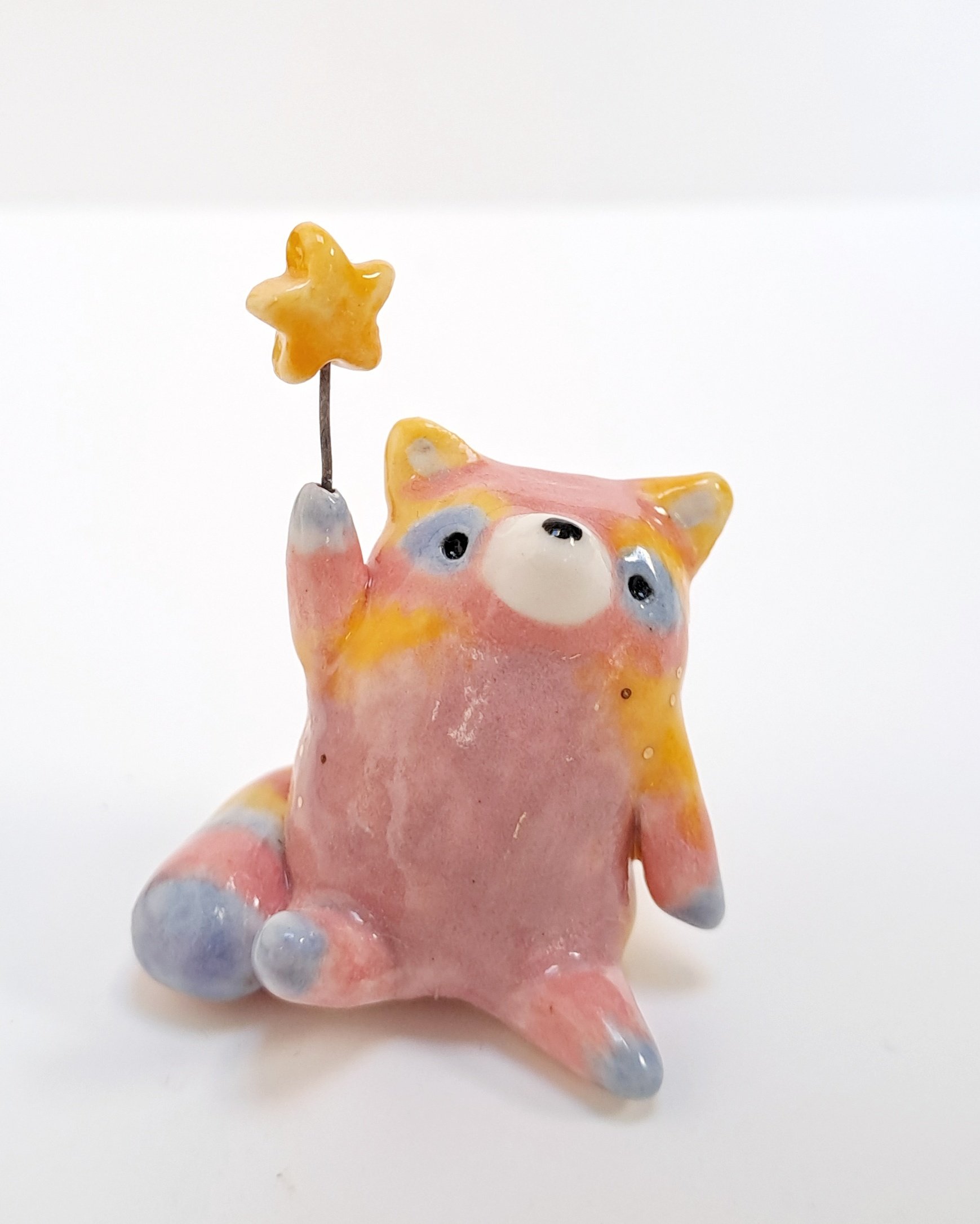 This super cute racoon with it's colourful coat, 24k gold dots and little star is waiting for its new home. It'd be happy just sitting there looking cute, or could even hold your special rings.