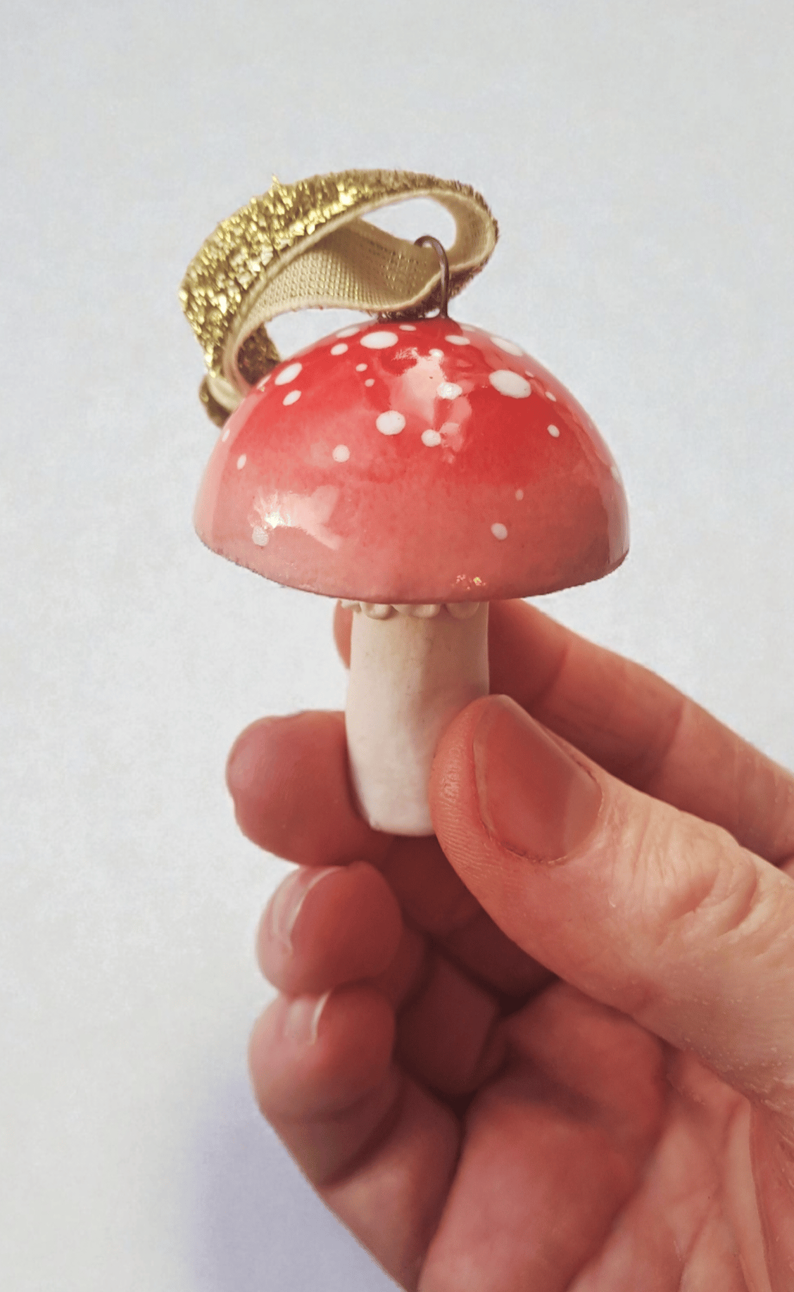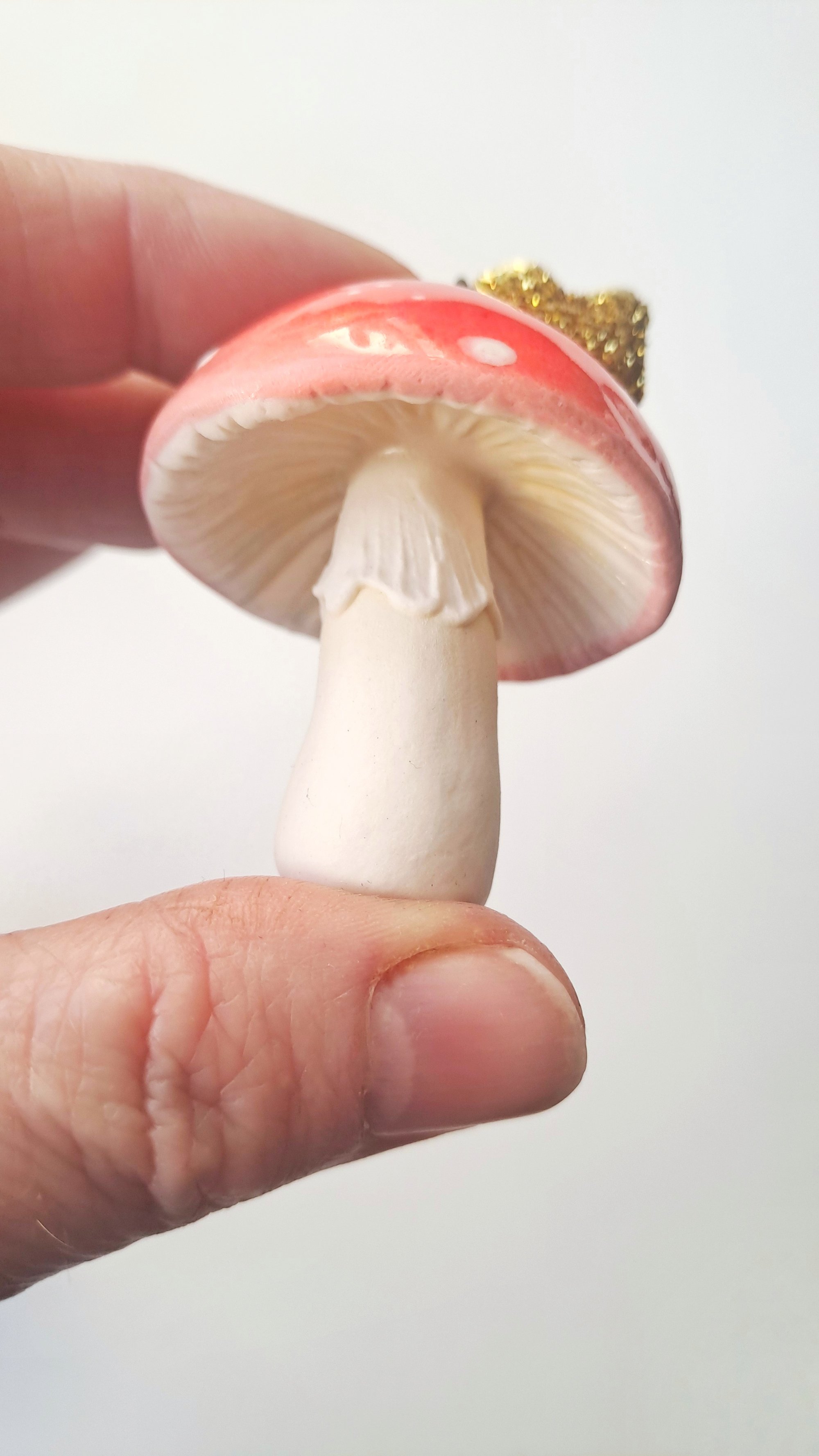 Featuring a beautiful shiny glazed cap and an unglazed frill and stem, each piece is entirely hand sculpted and painted so no two are the same.