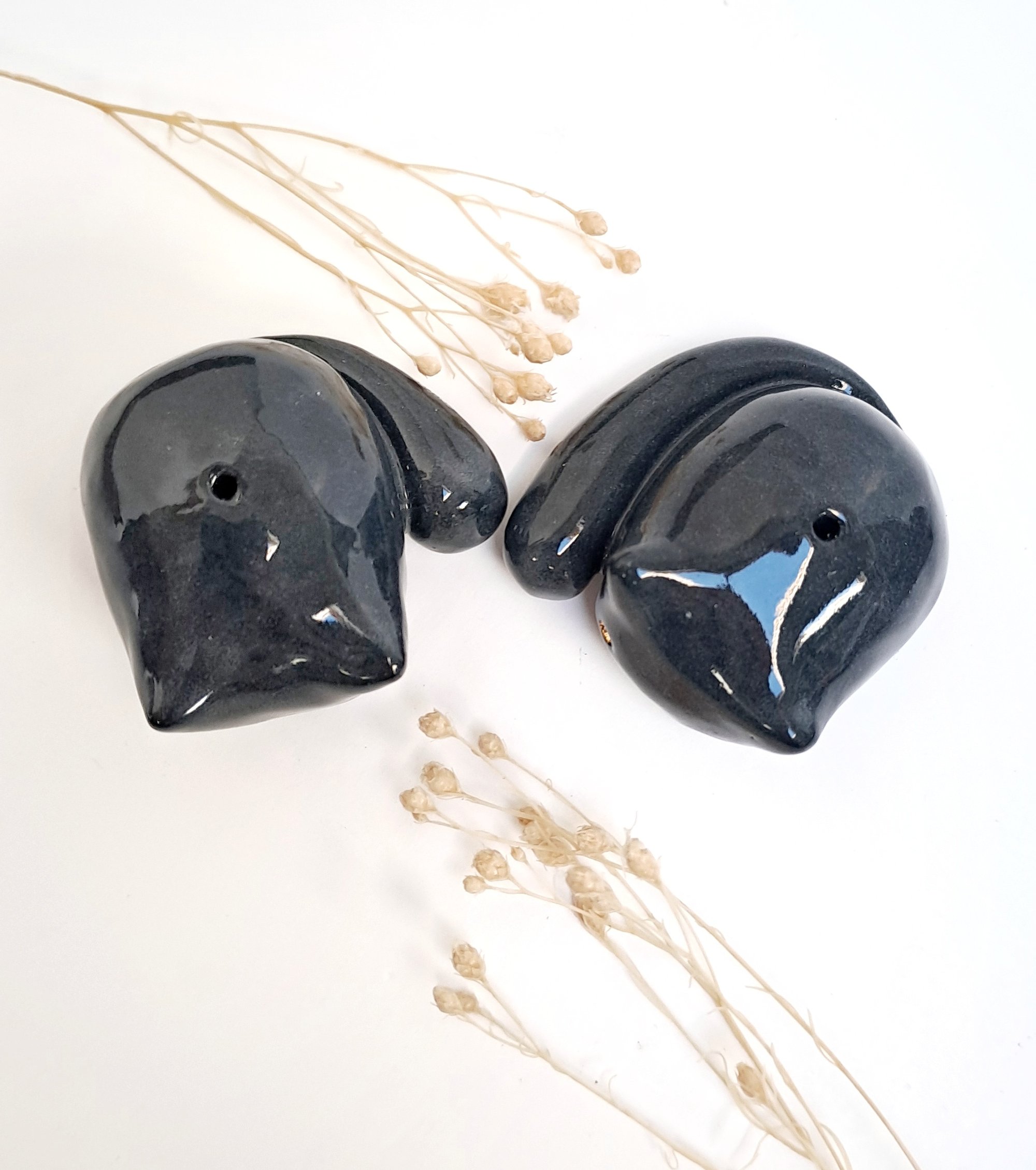 Adorable little black porcelain cats with holes in their backs to collect your cats whiskers!